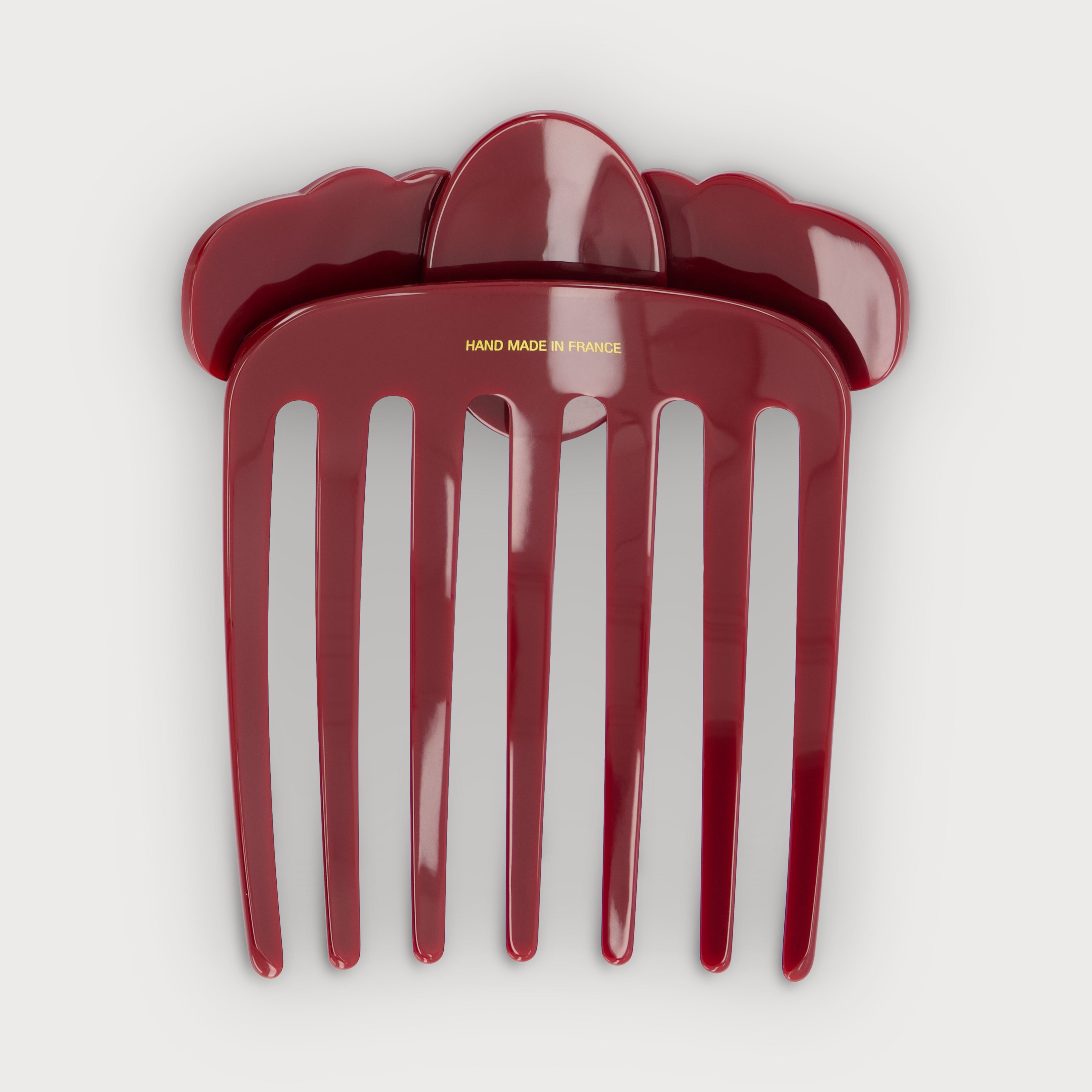 Introducing the Lace hair comb, a luxury piece designed by our creative studio in Paris and handcrafted in our workshops in the Jura region. This accessory is entirely Made in France. Drawing inspiration from the world of lace and intricate patterns, it takes shape with sensual and symmetrical curves. Enhanced by a central crystal that highlights the geometry of the design, it is crafted using a plating of acetate of contrasted colors made exclusively for Mauliébris. To use the comb, slide it upside-down through your hair, then flip it back over to tuck it back into your hair.