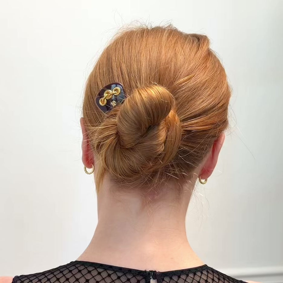 Designed in Paris by our creative studio and handcrafted in the Jura by our workshops, the Eyelets hairpin is a luxury piece entirely Made in France. From an inspiration initially very present in the worlds of jewelry and leather goods, Mauliébris takes up the codes and concepts, by opening its pieces with eyelets and playing on the accumulation of rings like skin piercings. In brass gilded with fine gold, the line's ornaments give the acetate a precious and "jewel" appearance, bringing a new modernity to the product. It can be customized with a gold brass letter or a rhinestone zodiac charm.