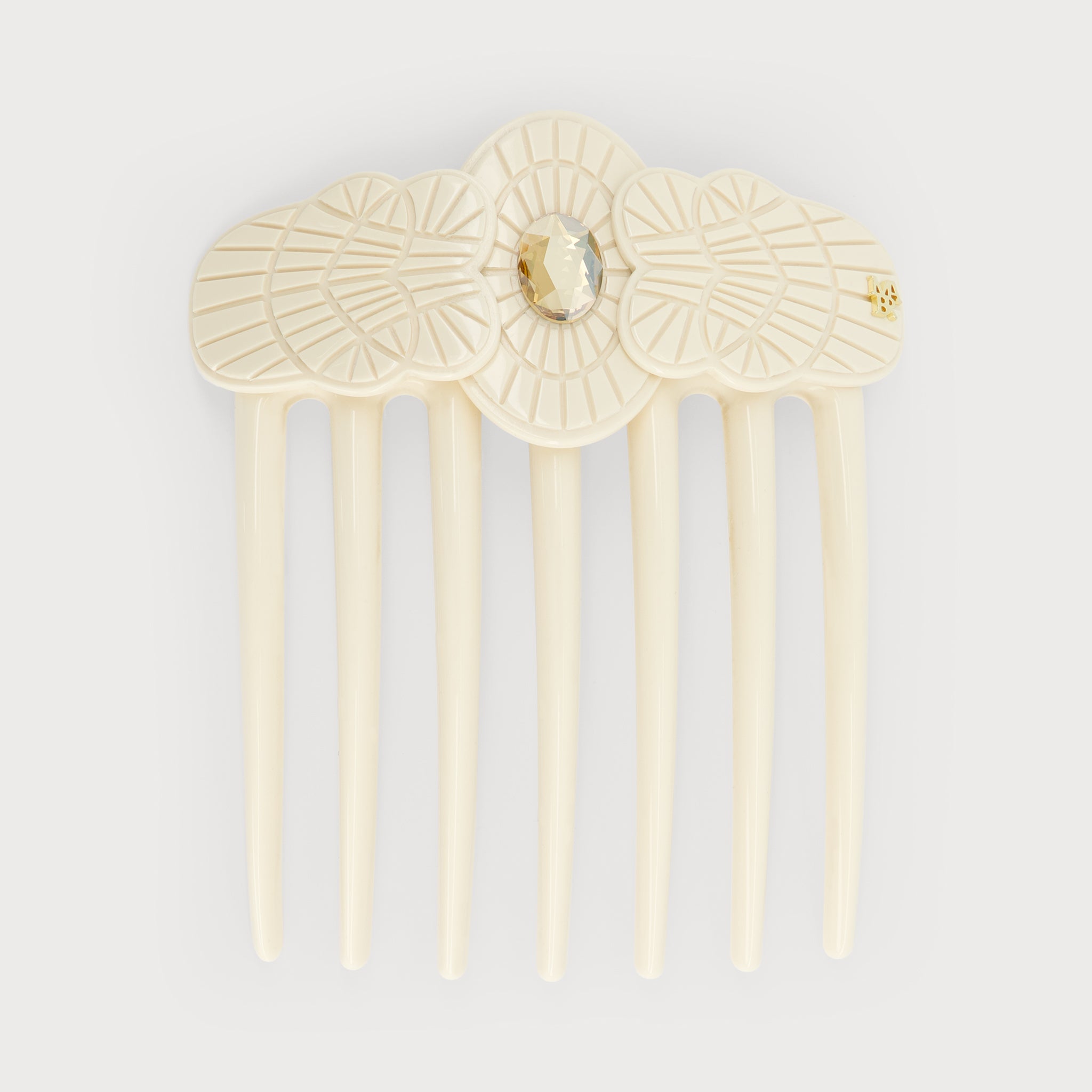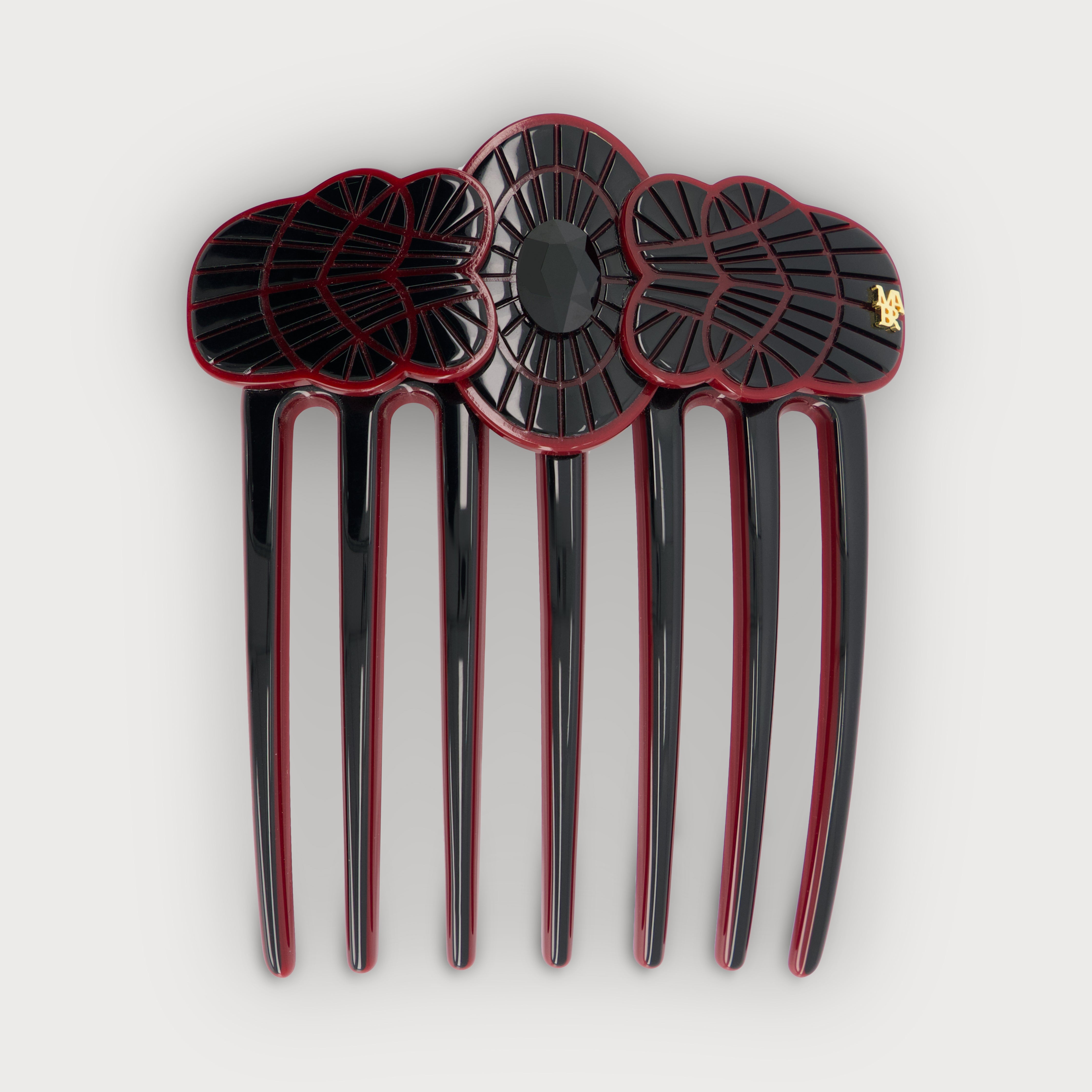 Introducing the Lace hair comb, a luxury piece designed by our creative studio in Paris and handcrafted in our workshops in the Jura region. This accessory is entirely Made in France. Drawing inspiration from the world of lace and intricate patterns, it takes shape with sensual and symmetrical curves. Enhanced by a central crystal that highlights the geometry of the design, it is crafted using a plating of acetate of contrasted colors made exclusively for Mauliébris.