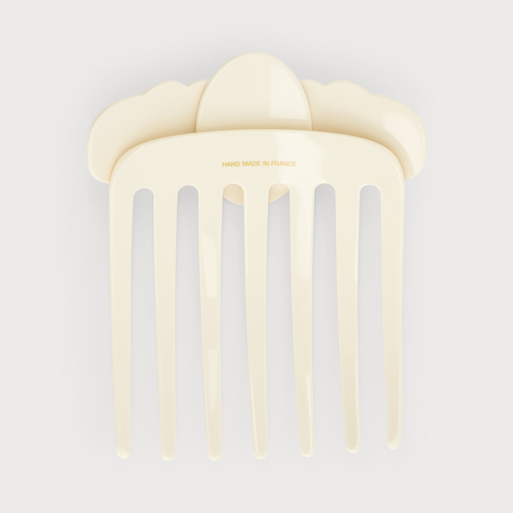 With its large, rounded teeth that are gentle on the hair, it can be worn in a bun or on the side,with a strand of hair framing the face. To use the comb, slide it upside-down through your hair, then flip it back over to tuck it back into your hair.