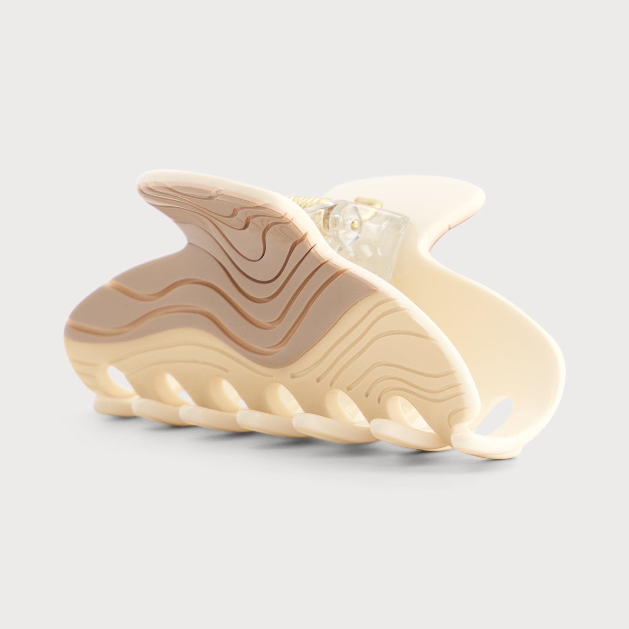Designed in Paris by our creative studio and handcrafted in the Jura by our workshops, the Sand claw clip is entirely Made in France. The Sand line reveals organic and sensual patterns inspired by the action of the wind on the sand. The material is made up of a custom plating of three layers of acetate in subtle colors with desert tones. The meticulous work of engraving the material reveals the internal layers and reveals the gradations of colors. Its spring mechanism is flexible and durable. Its rounded and polished teeth provide a gentle grip for your hair.