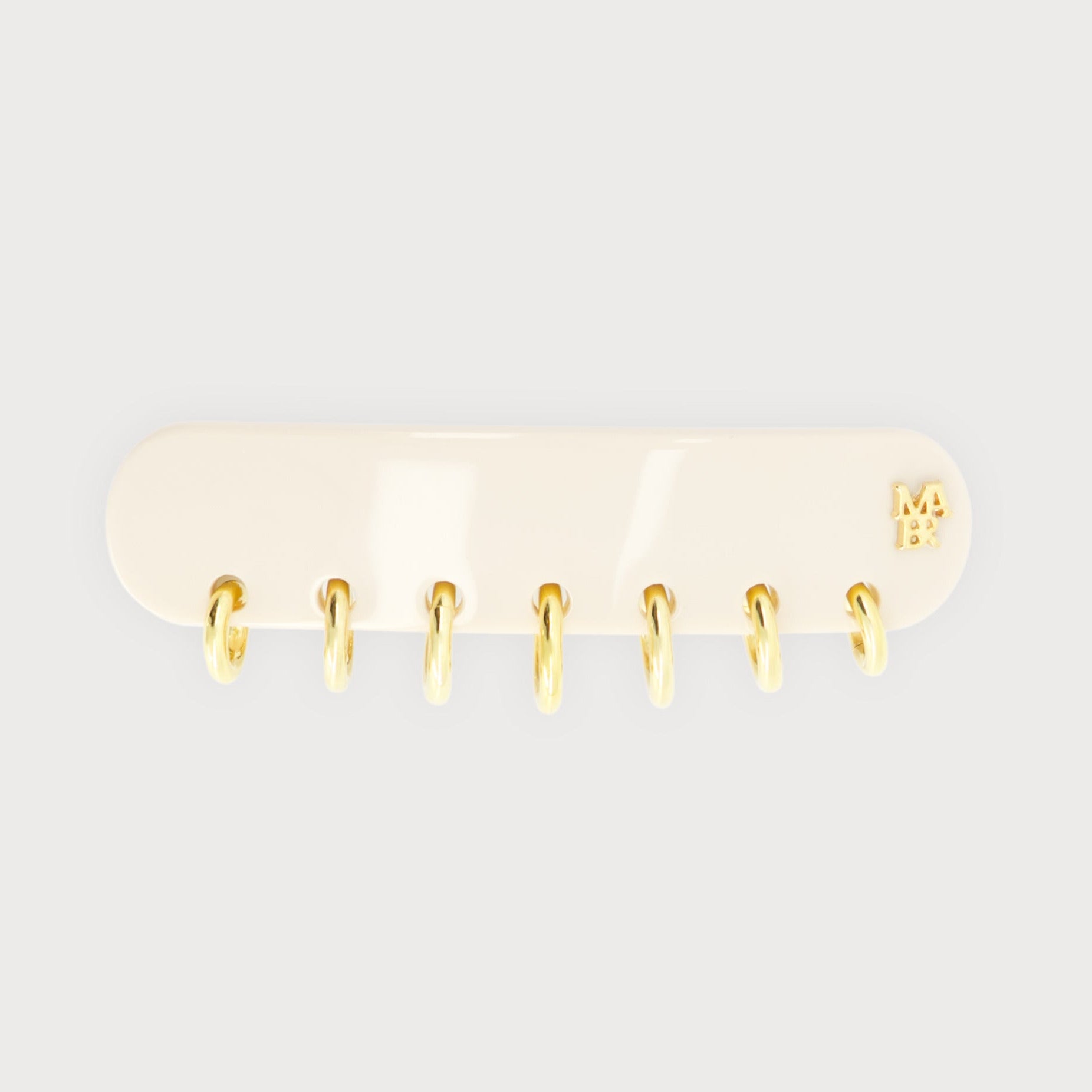 The Piercing hair clip is made of Italian cellulose acetate, an eco-friendly material derived from cotton flowers. It is biodegradable and smooth on the hair. The decorative rings are made of fine gold-plated brass.