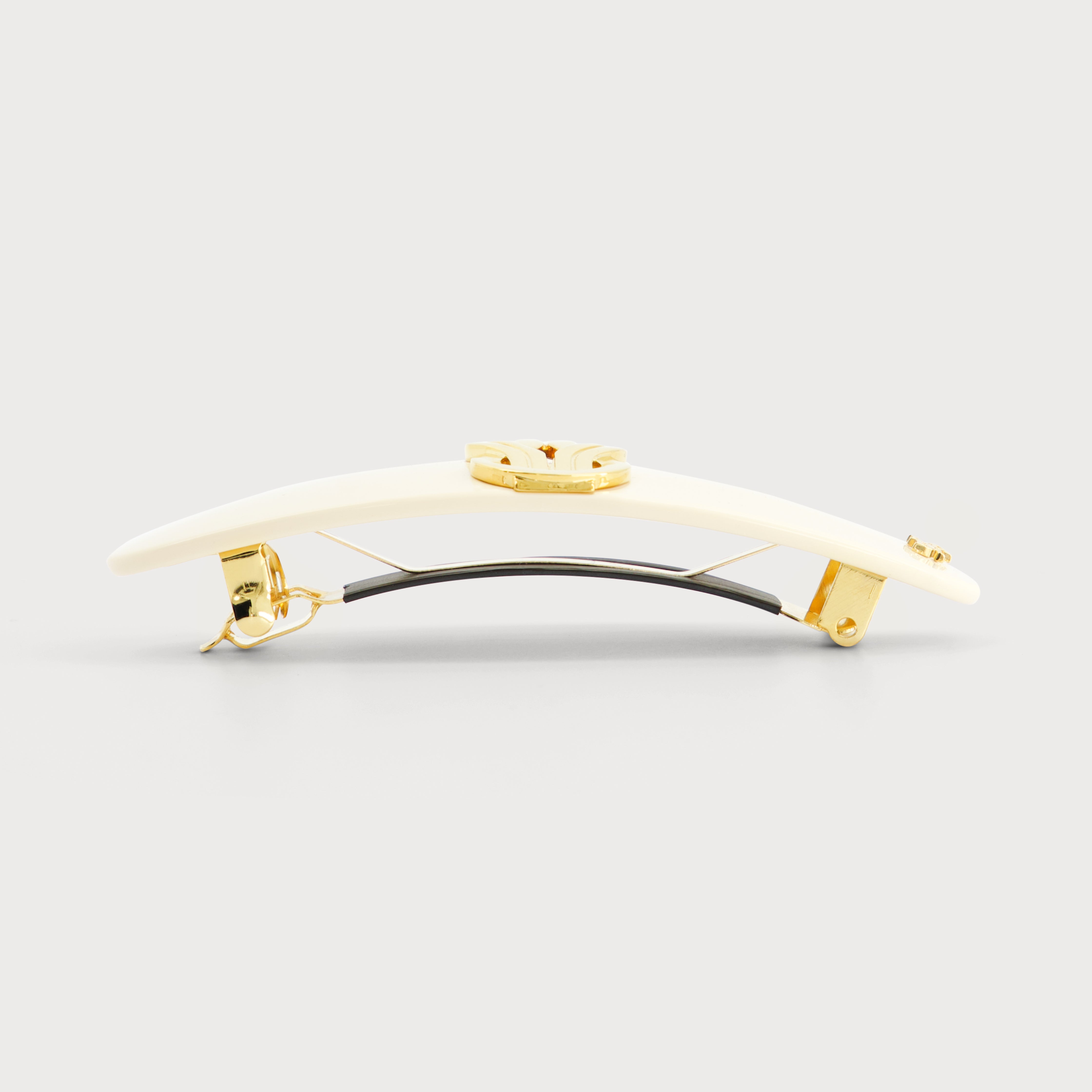 L'attache de la barrette mesure 8,5cm, une longueur idéale pour les cheveux moyennement denses à très épais. La barrette peut se porter en demi-queue sur cheveux courts, et en queue de cheval sur cheveux mi-longs à très longs. Pour plus de conseils, voir notre guide des tailles.