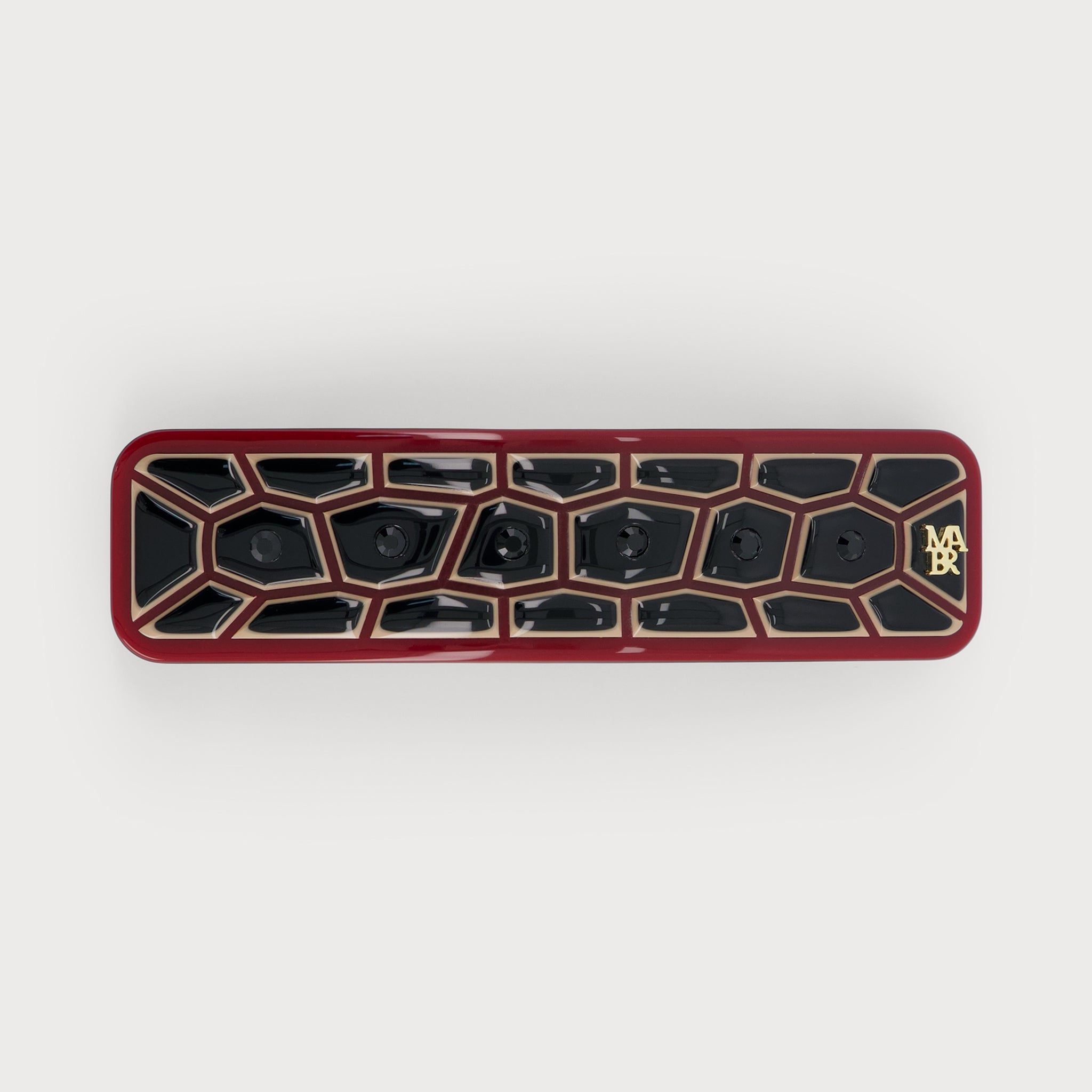 Imaginée à Paris par notre studio créatif et fabriquée à la main dans le Jura par nos ateliers, la barrette Carapace est une pièce de luxe intégralement Made in France. Formée d’un assemblage d’acétate en 3 couleurs spécifiquement développé pour la ligne, la barrette Carapace déploie un jeu de fraisage complexe de la matière permettant de jouer sur les couches et les volumes. Les contours d’une carapace apparaissent alors, inspirés de l’imaginaire du bestiaire fabuleux. La barrette Carapace, ornée de son délicat motif, est une barrette élancée et étroite conçue pour répartir les cheveux sur toute sa longueur. L'attache comporte notre mécanisme anti-glisse plébiscité par Vogue, qui protège le cheveu et permet de le maintenir dans la chevelure.
