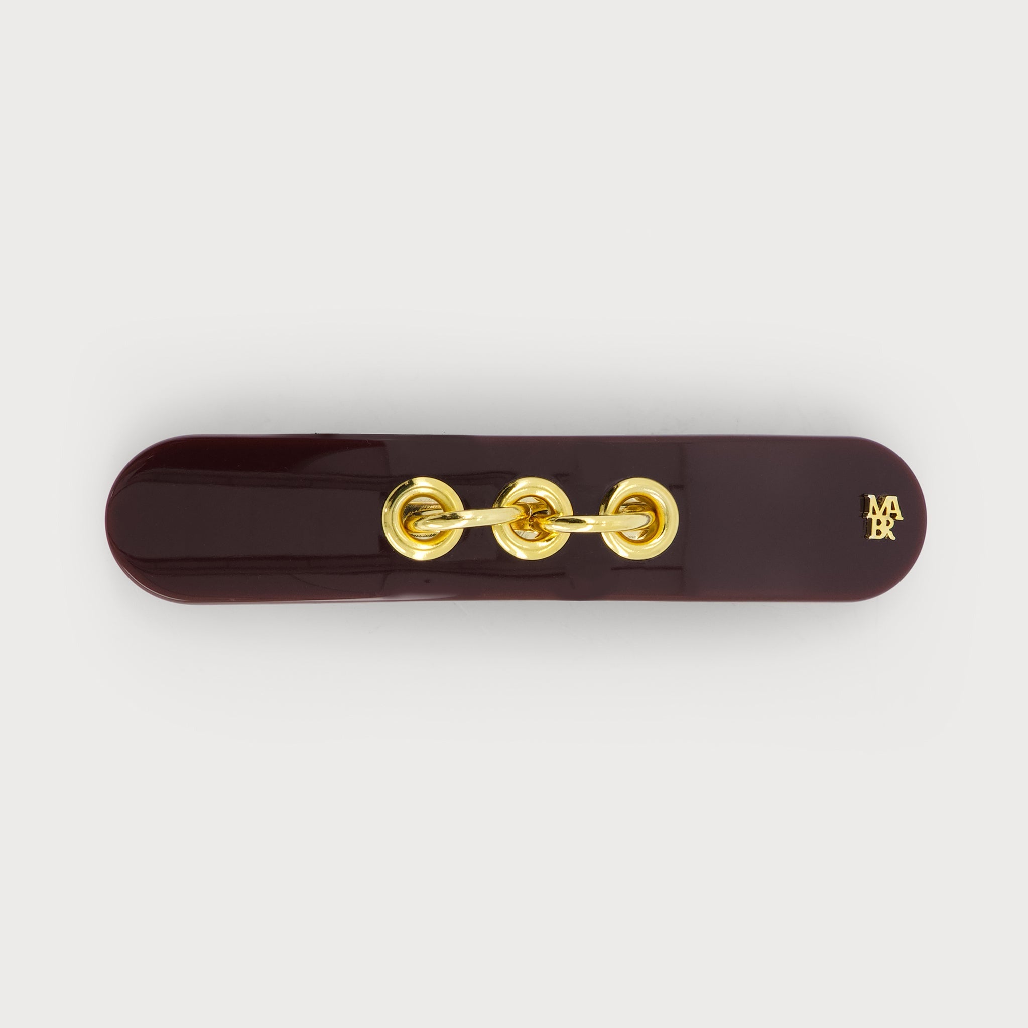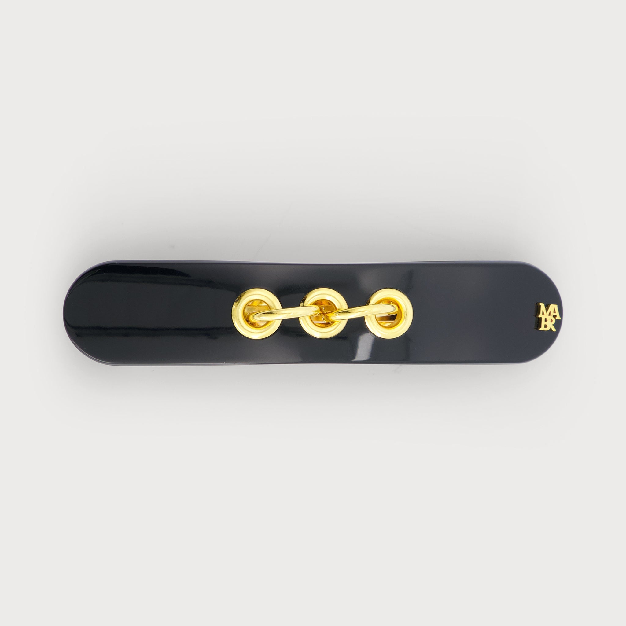 Imaginée à Paris par notre studio créatif et fabriquée à la main dans le Jura par nos ateliers, la barrette à cheveux Eyelets est une pièce de luxe intégralement Made in France. D’une inspiration initialement très présente dans les univers de la joaillerie et de la maroquinerie, Mauliébris reprend les codes et concepts, en ajourant ses pièces d’œillets et en jouant sur l’accumulation d’anneaux comme des piercings de peau. En laiton doré à l’or fin, les ornements de la ligne donnent à l’acétate un aspect précieux et « bijou », apportant une nouvelle modernité au produit. L'attache comporte notre mécanisme anti-glisse plébiscité par Vogue, qui protège le cheveu et permet de maintenir la pièce dans la chevelure. La barrette peut être personnalisée avec une initiale.