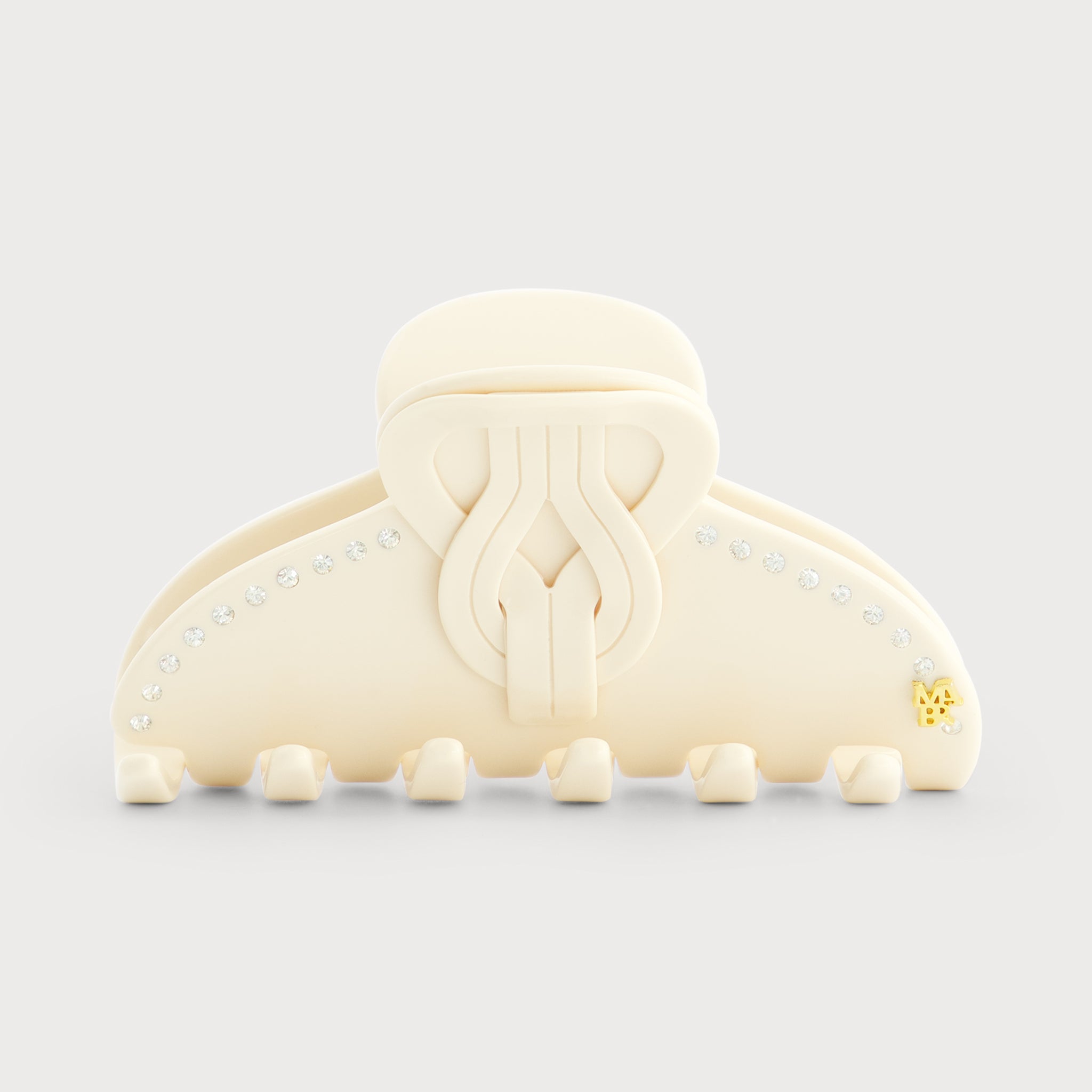 Imaginée à Paris par notre studio créatif et fabriquée à la main dans le Jura par nos ateliers, la pince Knot est une pièce de luxe intégralement Made in France. La ligne courbe, l’entremêlement et le nœud sont les maîtres-mots de la ligne Knot. Les pièces jouent avec les lignes fluides et l’aspect sculptural d’un nœud central minutieusement découpé, courbé et posé à la main, entouré d’un liseré de cristaux, tous deux dans des couleurs subtiles en ton sur ton. Son ressort est souple et résistant, et ses dents arrondies et polies permettent un maintien doux pour les cheveux.