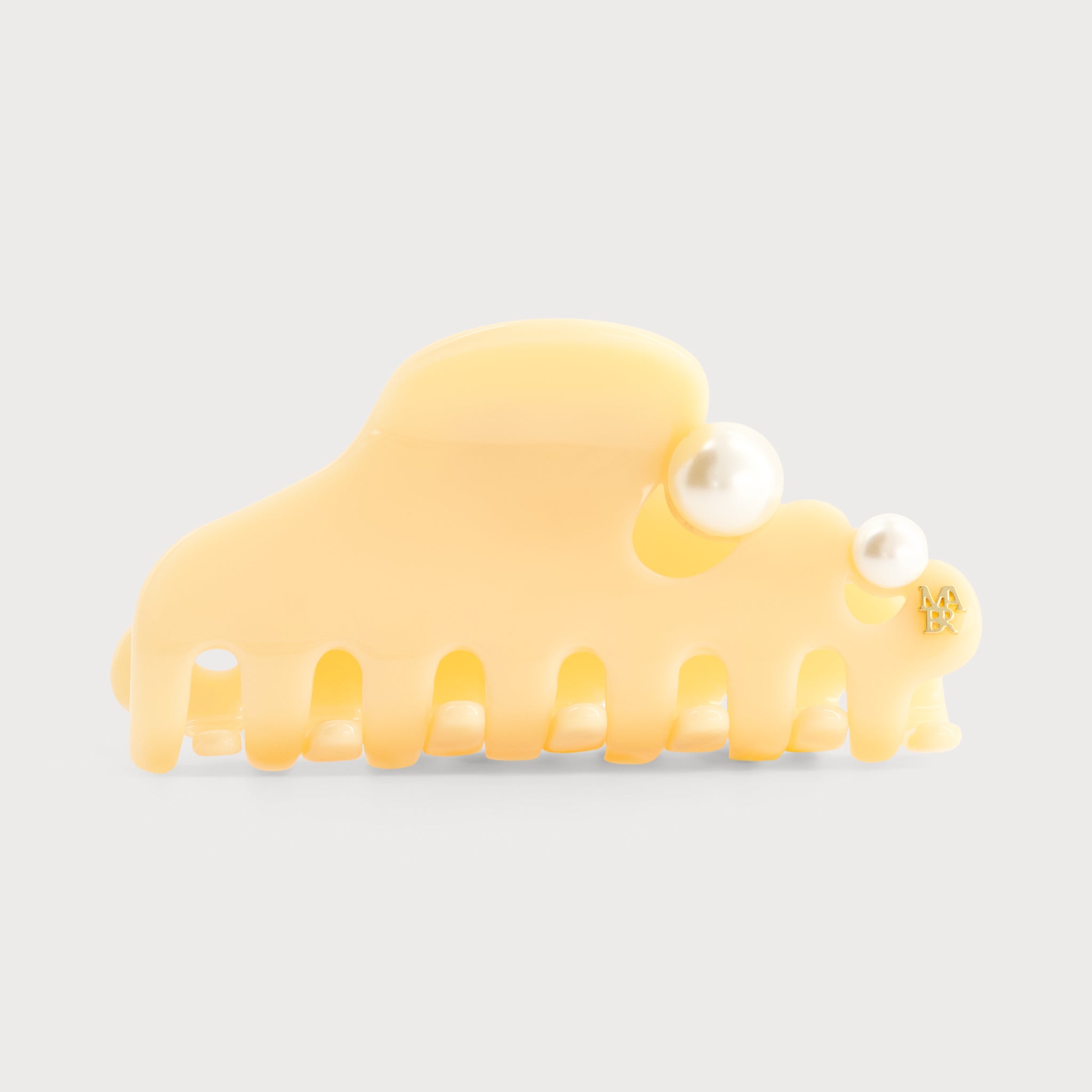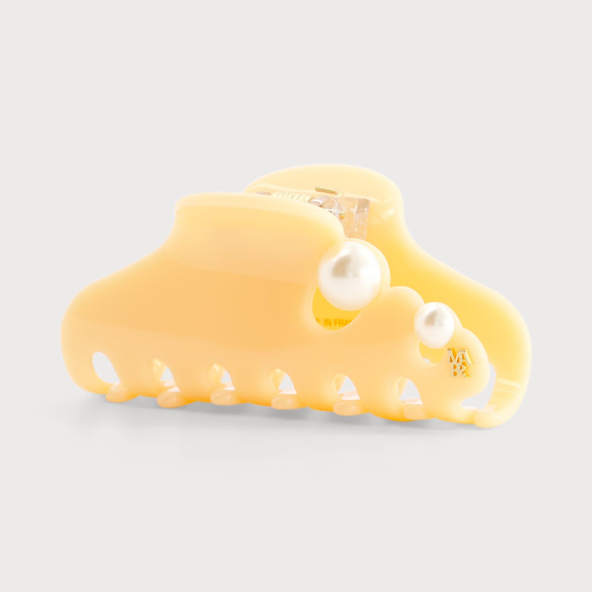 La Pince Pearl est en acétate de cellulose italien, une matière d’origine naturelle venant de la fleur de coton, biodégradable et respectueuse du cheveu.