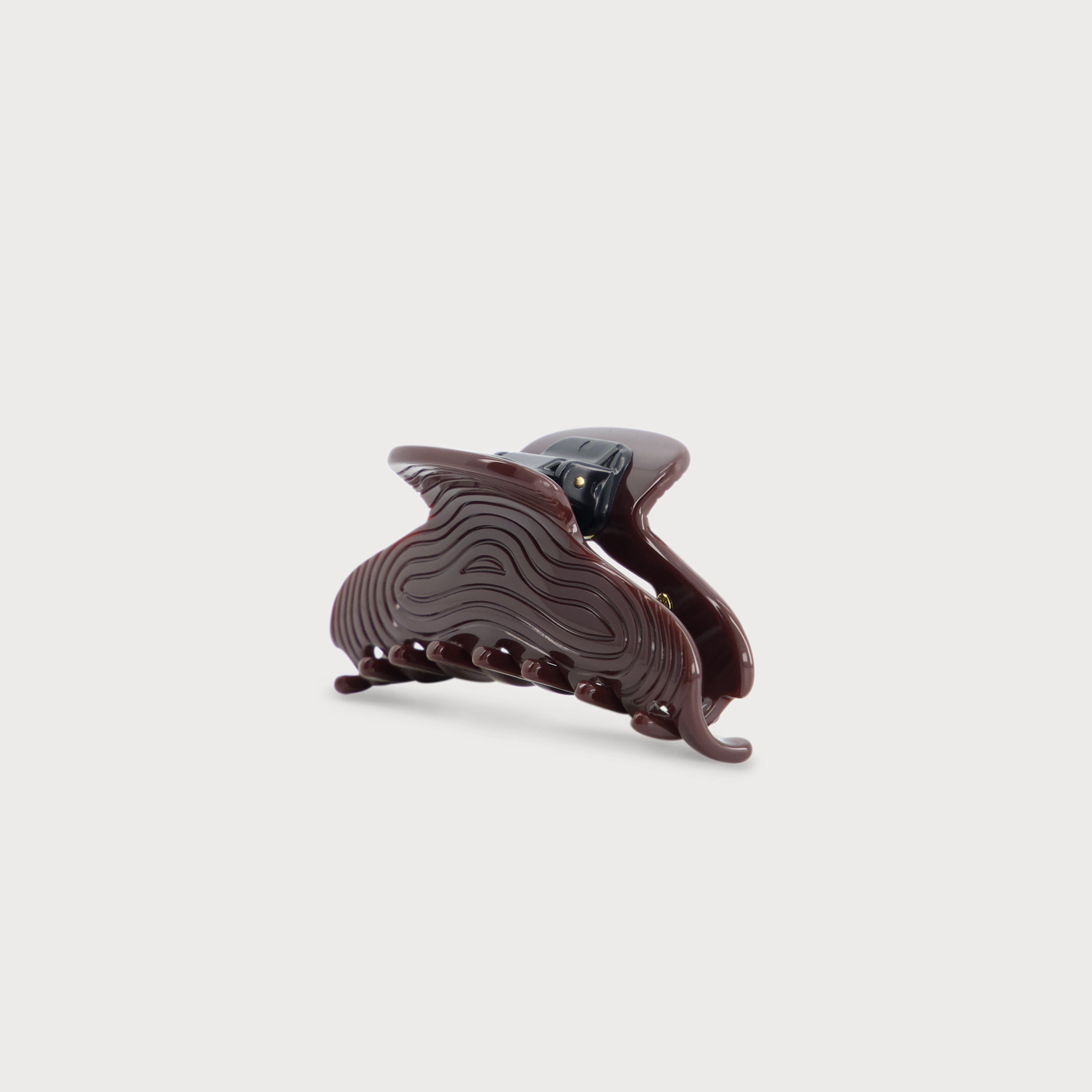 La pince à cheveux Wave est en acétate de cellulose, une matière d’origine naturelle venant de la fleur de coton, biodégradable et douce pour les cheveux. L'élément décoratif est en laiton doré à l’or fin.